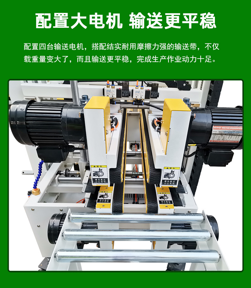 • 輸送帶:負責將紙箱輸送到封箱位置,其速度可以根據(jù)生產(chǎn)需求進行調(diào)節(jié),并且能夠適應不同尺寸的紙箱,保證紙箱在輸送過程中的平穩(wěn)性和準確性3.