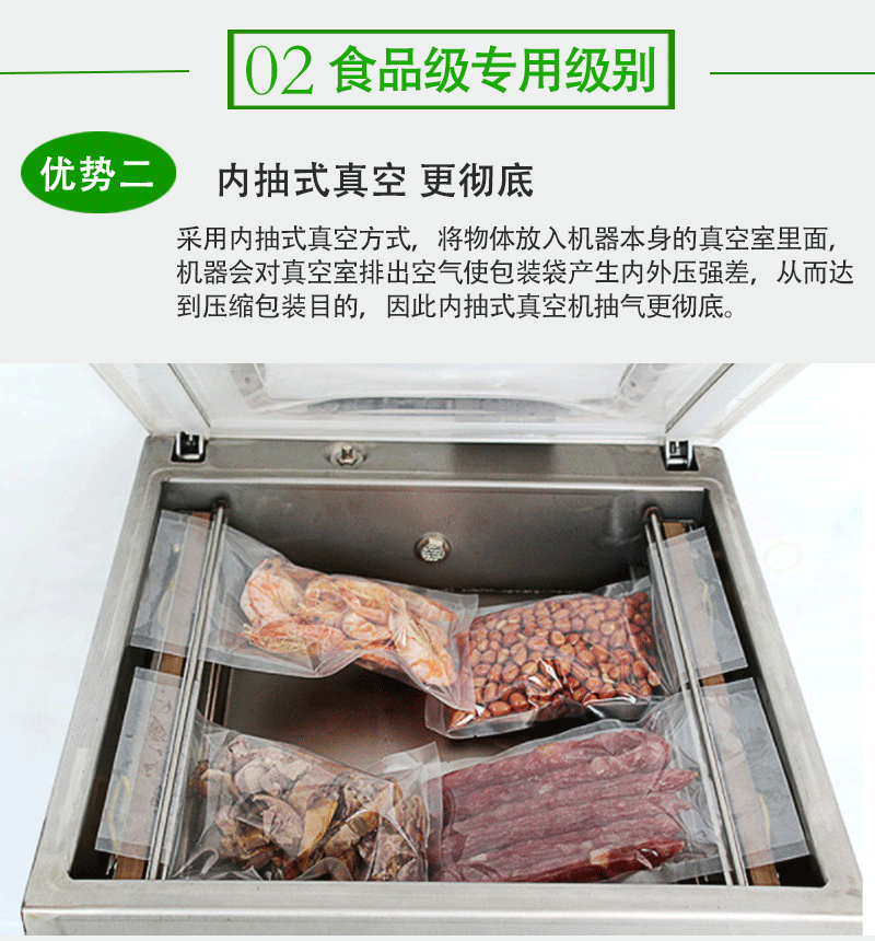 單室內(nèi)抽真空包裝機結(jié)構(gòu)相對簡單,制造成本低,購置價格親民