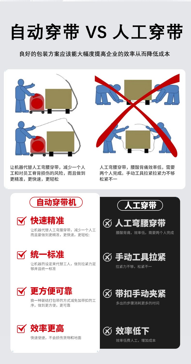 - 帶倉(cāng)容量不足:如果帶倉(cāng)容量過小,在連續(xù)作業(yè)時(shí),需要頻繁更換打包帶卷,不僅影響工作效率,還可能在更換過程中導(dǎo)致打包帶安裝不規(guī)范,進(jìn)而引發(fā)卡帶或送帶不暢??筛鶕?jù)實(shí)際工作需求,選擇合適帶倉(cāng)容量的穿帶機(jī),或者對(duì)現(xiàn)有的帶倉(cāng)進(jìn)行改造,增加其容量。