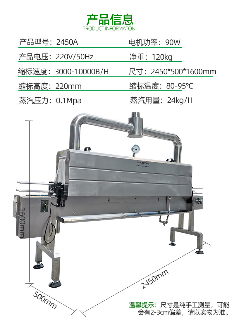 • 穩(wěn)定的蒸汽源:需要確保有持續(xù)穩(wěn)定的蒸汽供應(yīng),否則會(huì)影響收縮效果和生產(chǎn)進(jìn)度。