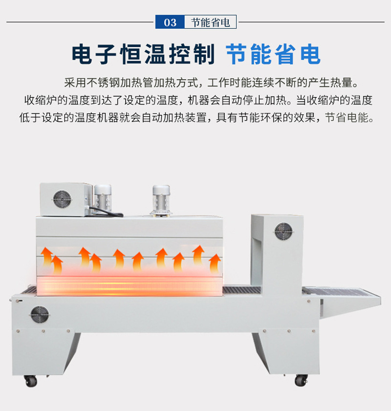 - 高效加熱方式:如采用先進(jìn)的加熱元件或技術(shù),能快速升溫且熱量分布均勻,在保證包裝效果的同時(shí),降低能源消耗。