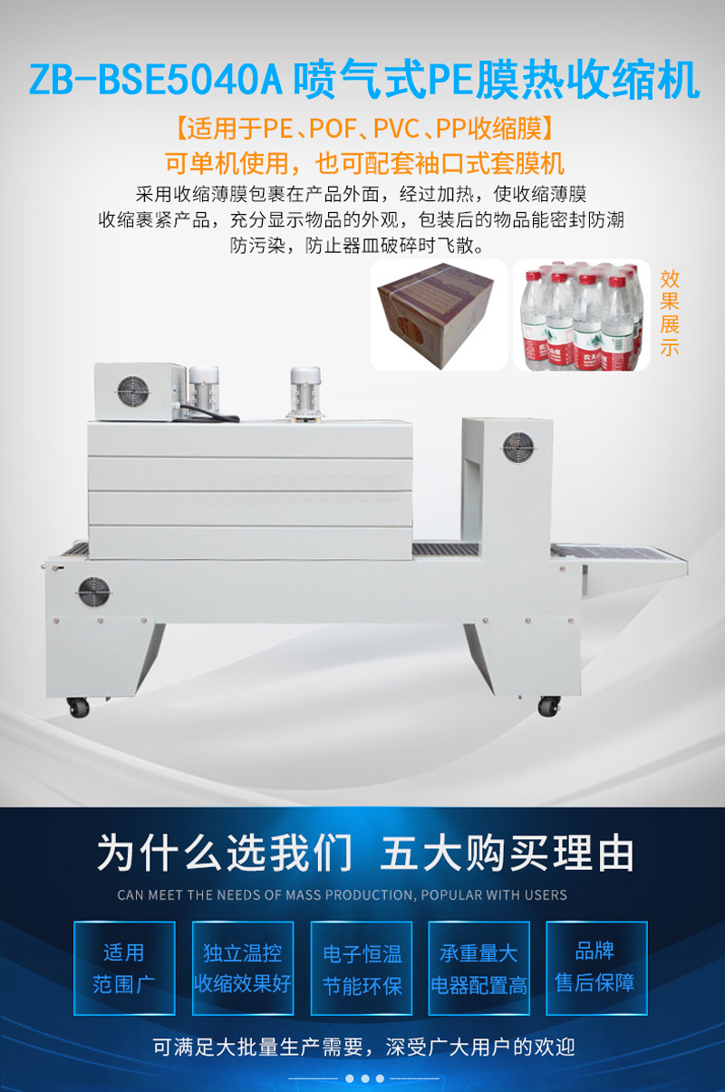 - 兼容多種包裝膜:可使用多種類(lèi)型的熱收縮膜,如 PVC、POF、PE 等,企業(yè)可根據(jù)產(chǎn)品特性、包裝成本和市場(chǎng)需求選擇合適的膜材。
