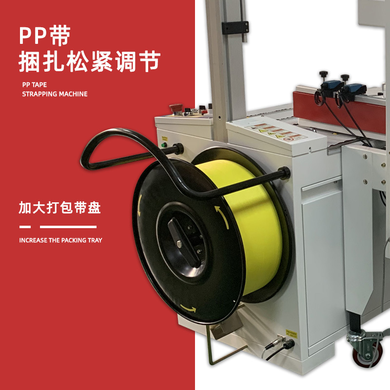 • 打包帶收緊:隨后,收緊裝置會啟動,通過機械方式(如通過氣缸驅(qū)動的活塞結(jié)構(gòu)等)或氣動方式,將抽出的打包帶收緊,使其緊緊勒住紙箱,為紙箱提供額外的加固作用。收緊的力度也可以根據(jù)物品的特性進行調(diào)整,比如對于較重的物品,可能需要更大的收緊力度。