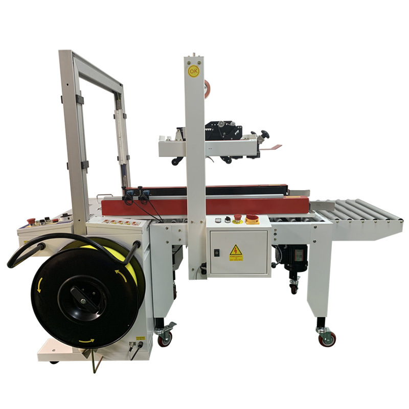 全自動封箱打包機適用范圍廣:可以對各種形狀、大小的物品進行包裝,只要選擇合適的紙箱和包裝材料(如膠帶、打包帶等),就能滿足不同產(chǎn)品的包裝需求。