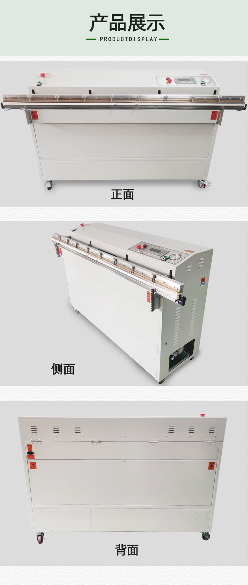 - 在工業(yè)領(lǐng)域,外抽真空包裝機(jī)用于包裝各種機(jī)械零件、工具、電子設(shè)備等。例如,對(duì)精密的機(jī)床配件進(jìn)行真空包裝,可以防止在運(yùn)輸和儲(chǔ)存過(guò)程中因受潮、氧化等因素而損壞;對(duì)于大型的電子顯示屏,可以減少灰塵和濕氣的影響,保證產(chǎn)品質(zhì)量。