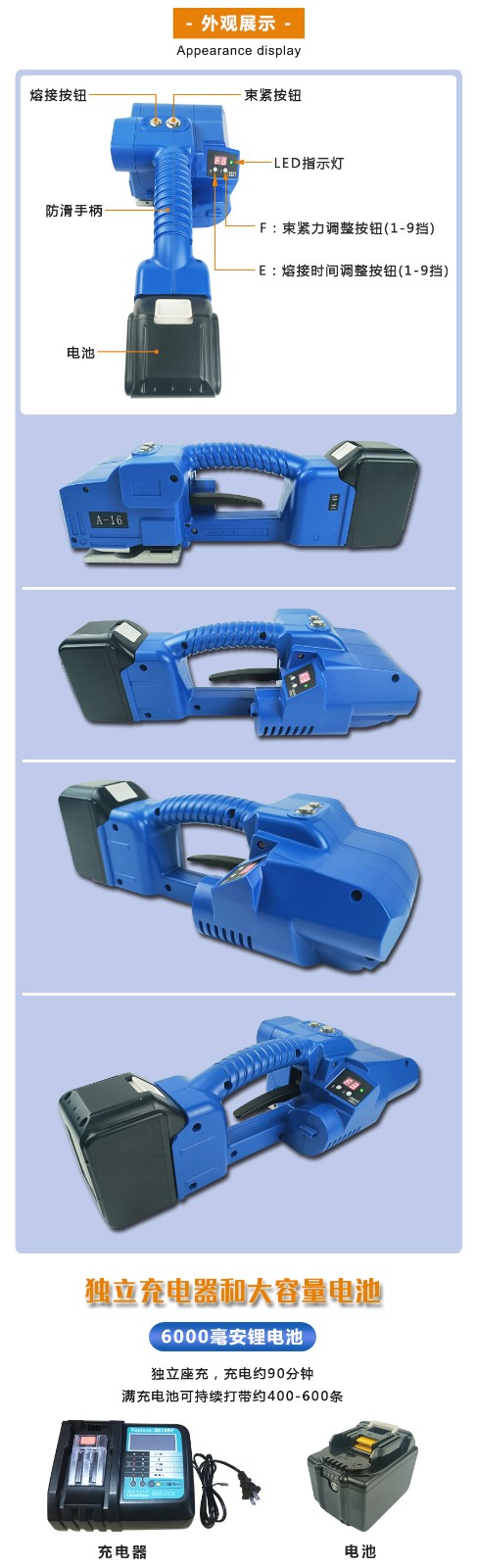 - 體積小、重量輕,便于攜帶到各種工作場(chǎng)所。無論是在倉庫的貨架旁、運(yùn)輸車輛內(nèi)還是在戶外的臨時(shí)包裝點(diǎn),都可以輕松使用。工作效率較高,對(duì)于小批量或臨時(shí)的打包任務(wù),能夠快速完成打包操作。例如,在活動(dòng)現(xiàn)場(chǎng)對(duì)禮品盒或宣傳資料進(jìn)行打包時(shí),手持打包機(jī)可以迅速投入使用。