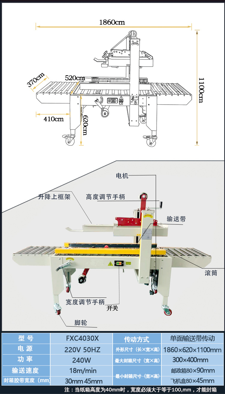 - 精準(zhǔn)高效:封箱機(jī)通過精確的機(jī)械設(shè)計(jì)和控制系統(tǒng),能夠準(zhǔn)確地完成每個(gè)封箱動(dòng)作,避免了人工操作可能出現(xiàn)的失誤和偏差,從而保證了封箱的質(zhì)量和效率。