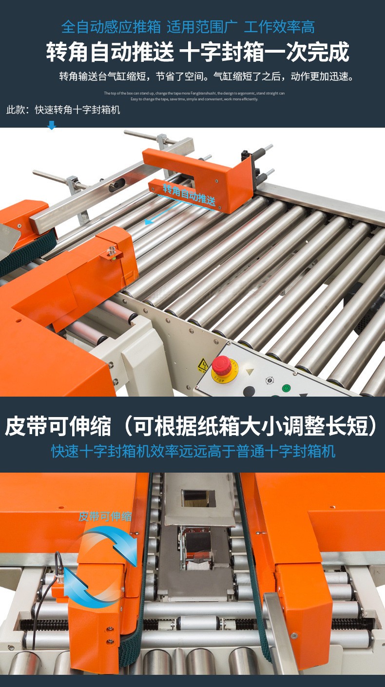 反觀十字封箱機,它以高度自動化的流程高效運作。當紙箱通過輸送裝置被精準送入封箱區(qū)域后,機器瞬間啟動,兩側(cè)的封箱裝置迅速伸出膠帶,以極高的速度沿著紙箱的縱橫方向交叉纏繞封貼,整個過程一氣呵成。先進的十字封箱機每分鐘可輕松完成 20 至 30 箱的封箱任務,是人工封箱速度的數(shù)倍之多。這一顯著的速度提升,使得企業(yè)在大規(guī)模生產(chǎn)場景下,能夠快速完成大量產(chǎn)品的包裝封箱工序,有效縮短產(chǎn)品從生產(chǎn)到入庫的周期,極大地滿足了市場對產(chǎn)品快速交付的需求,顯著增強了企業(yè)在激烈市場競爭中的響應能力與供貨實力