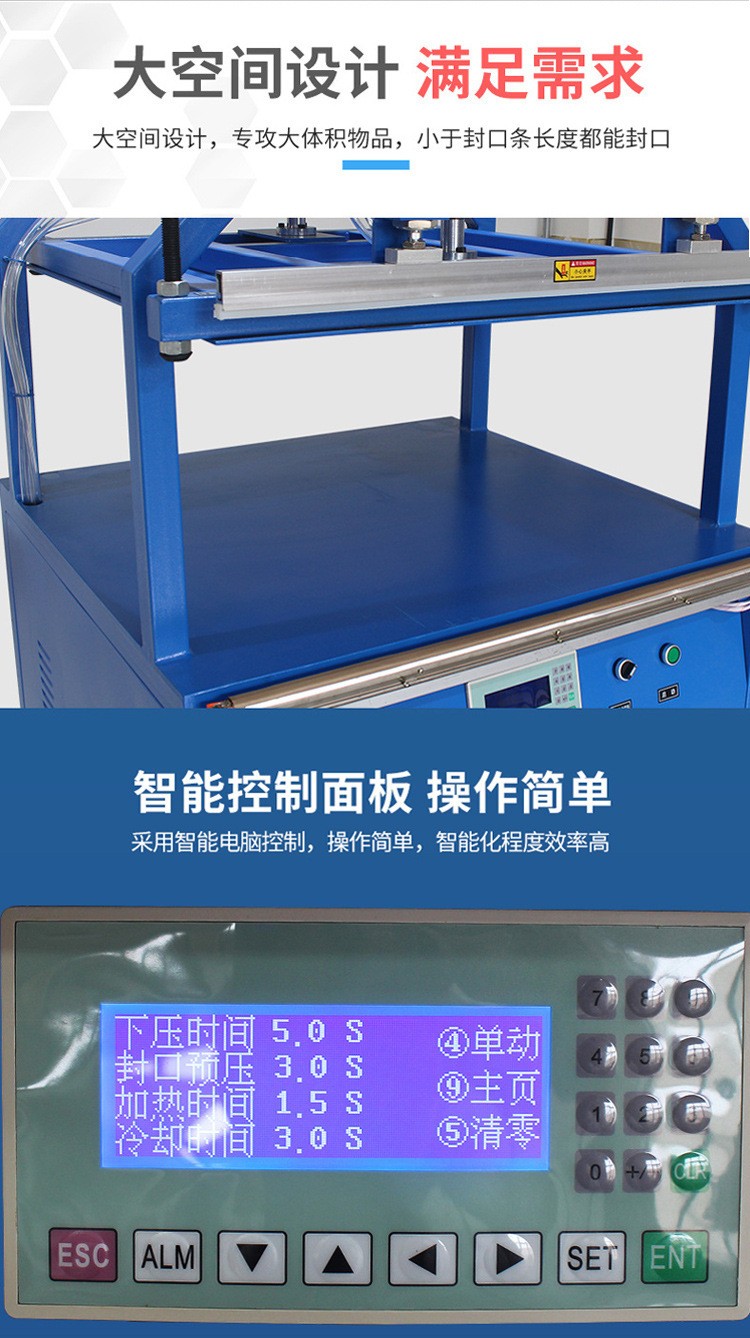 - 較薄的薄膜:厚度在 0.05 - 0.1mm 的薄膜,封口溫度相對較低,一般在 100 - 150℃,封口時間也較短,大約 0.5 - 1.5 秒。這是因為薄薄膜容易受熱熔化,過高的溫度和過長的時間會導致薄膜被燒穿或封口處變形。