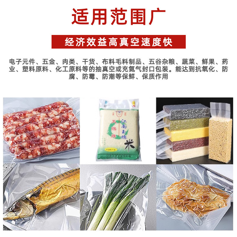 在抽氣速度方面,它們更是表現(xiàn)出色。內(nèi)置高性能真空泵,配合優(yōu)化的氣路系統(tǒng),抽氣速率極快。以常見(jiàn)的食品包裝場(chǎng)景為例,普通真空包裝機(jī)抽取一定量空氣可能需要數(shù)十秒,而這些先進(jìn)機(jī)型在短短幾秒內(nèi)就能使包裝袋內(nèi)達(dá)到理想真空度。像包裝顆粒狀的堅(jiān)果食品,每秒可抽取大量空氣,快速營(yíng)造出真空環(huán)境,為后續(xù)封口工序爭(zhēng)取了寶貴時(shí)間。這種快速抽氣能力,極大縮短了單個(gè)包裝的處理時(shí)長(zhǎng),多包裝作業(yè)時(shí),整體包裝效率便得到顯著提升,滿足了企業(yè)大規(guī)模、高效率生產(chǎn)的需求