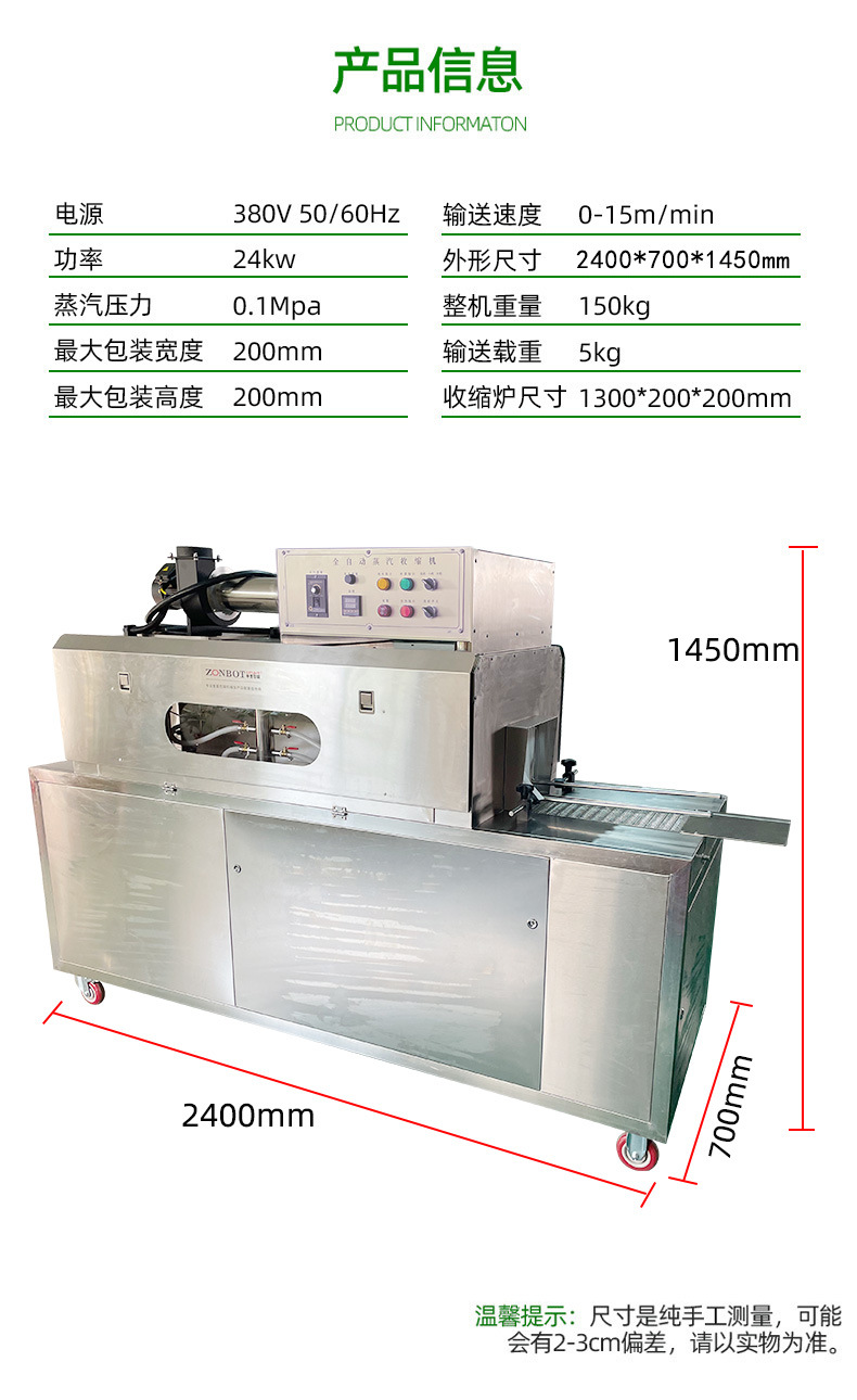 蒸汽收縮一體機(jī)在包裝領(lǐng)域展現(xiàn)出卓越性能,尤其是其蒸汽均勻加熱的特性,為各類產(chǎn)品的收縮包裝帶來(lái)了近乎完美的呈現(xiàn)效果。當(dāng)設(shè)備啟動(dòng),細(xì)膩且溫度恒定的蒸汽氤氳而出,迅速?gòu)浡潦湛s工作區(qū)域。