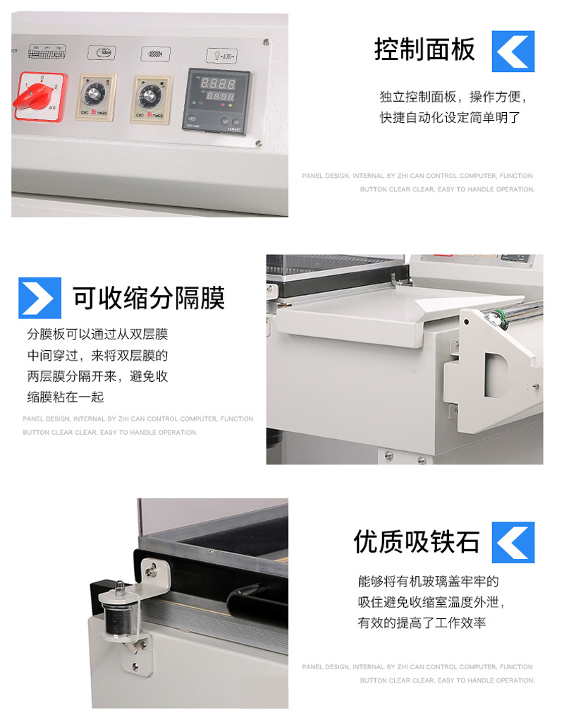 - 優(yōu)點(diǎn):加熱均勻性好,熱空氣能夠在收縮室內(nèi)形成均勻的溫度場,使薄膜各個部位都能得到充分均勻的加熱;可以通過調(diào)節(jié)風(fēng)機(jī)的轉(zhuǎn)速和加熱元件的功率來精確控制溫度和風(fēng)速,適應(yīng)不同類型和厚度的收縮膜;對環(huán)境的適應(yīng)性強(qiáng),可在不同的環(huán)境溫度下穩(wěn)定工作。