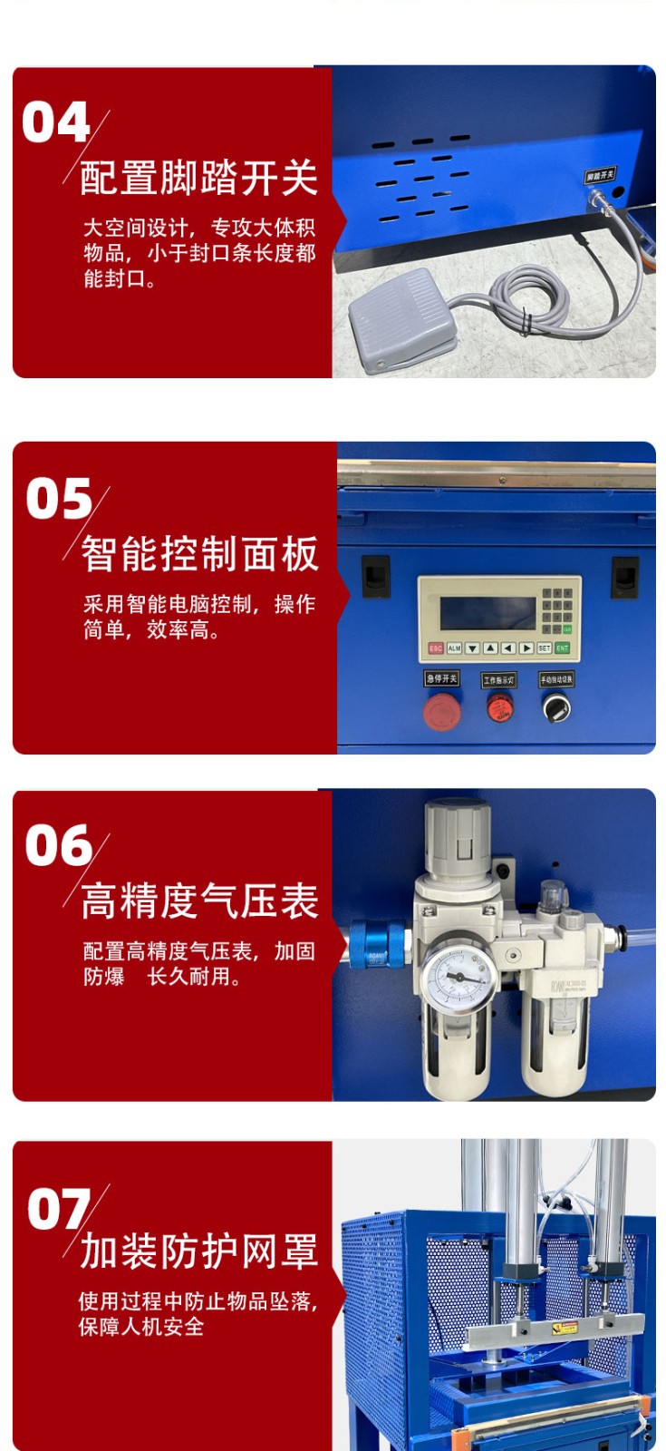 - 控制封口壓力:合適的封口壓力能確保包裝材料在加熱后緊密貼合,形成良好的密封。壓力過小,封口處無法充分壓合,會(huì)出現(xiàn)縫隙;壓力過大,可能會(huì)使包裝材料變形或損壞??赏ㄟ^調(diào)整封口機(jī)的壓力調(diào)節(jié)裝置,使封口壓力均勻且適中。