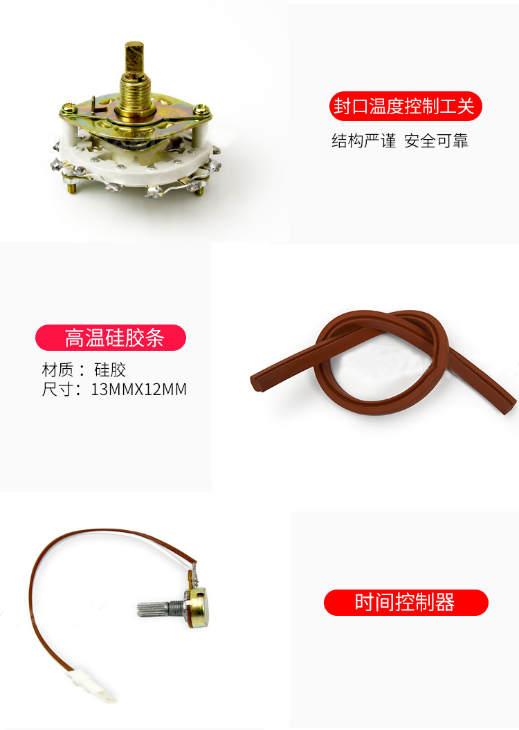 - 故障原因:加熱溫度不夠,加熱時間過短,封口壓力不足,封口處有異物或不平整,加熱絲老化。