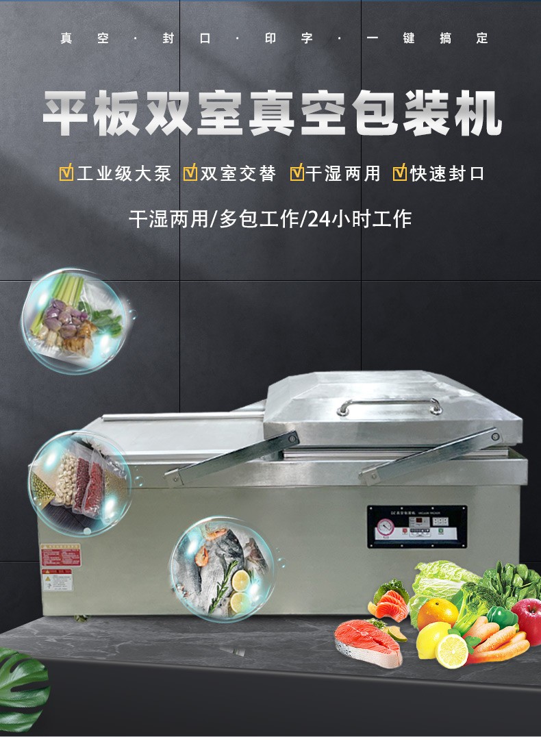 雙室平層真空包裝機的操作流程并不復(fù)雜,通常包括以下步驟: