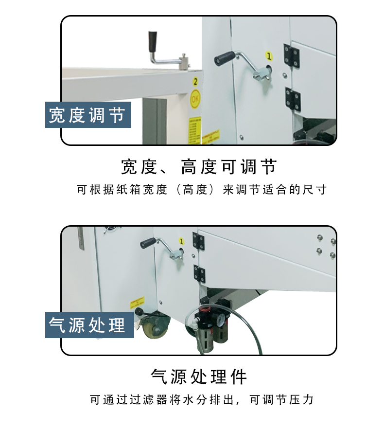 - 適用范圍廣:可適用于各種材質(zhì)和尺寸的紙箱,無(wú)論是紙質(zhì)較硬的重型紙箱,還是普通的輕型紙箱,都能進(jìn)行良好的封箱操作。對(duì)于不同規(guī)格的紙箱,只需對(duì)機(jī)器進(jìn)行簡(jiǎn)單的調(diào)整即可適應(yīng)。