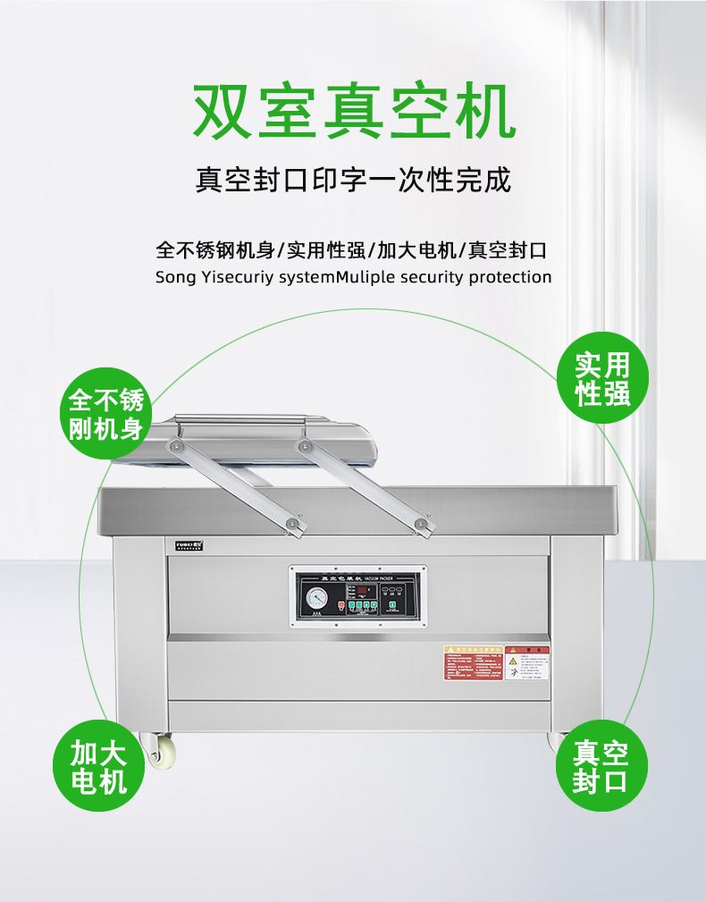 雙室真空包裝機可在真空包裝的基礎上,向包裝袋內充入氮氣、二氧化碳等惰性氣體或混合氣體,起到更好的防腐、防潮、防氧化等保質效果