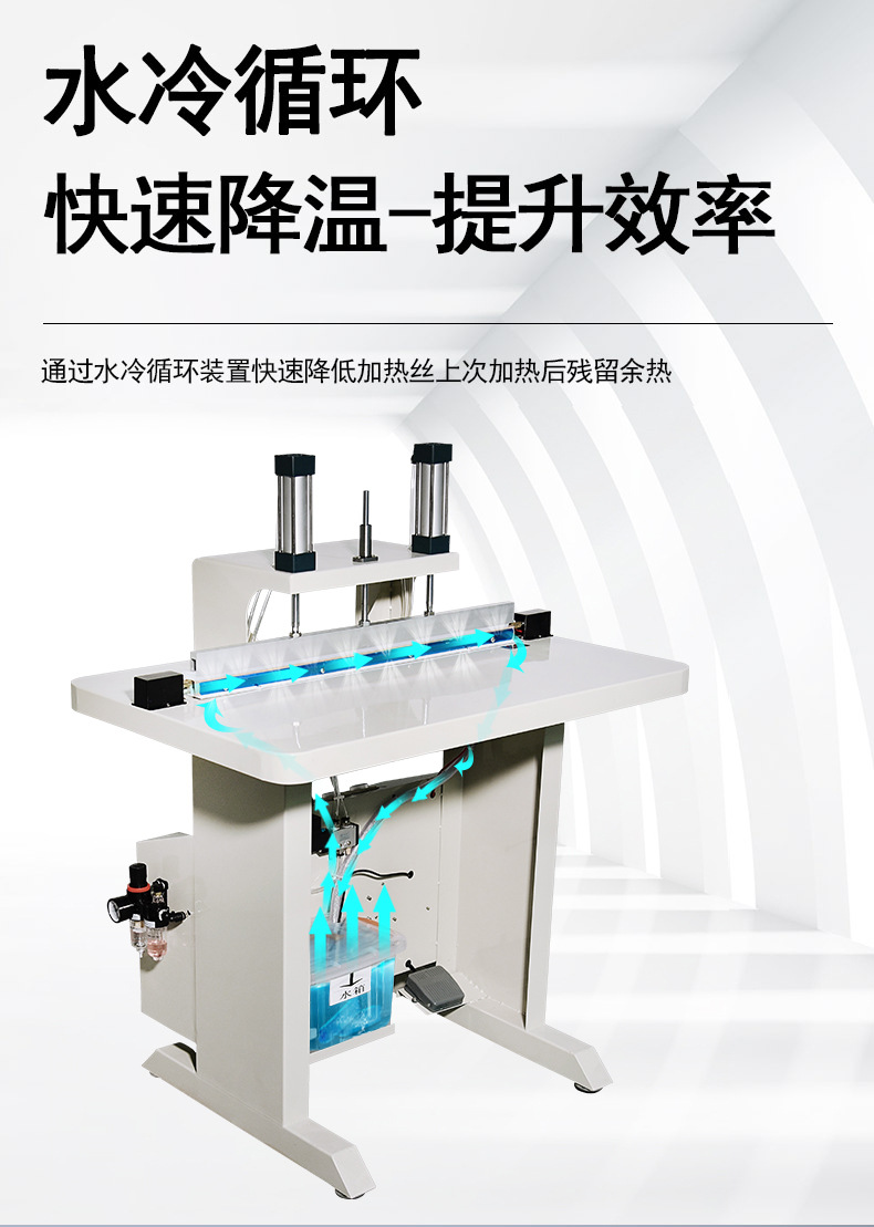 - 水冷系統(tǒng):通過板式換熱器或銅管循環(huán)冷卻水(水溫 15~25℃,流量 3~5L/min),在封口后 0.5~1 秒內(nèi)將溫度降至 50℃以下,使分子鏈快速固化。