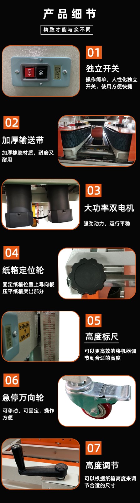 適用范圍 廣泛應用在家用電器、紡織、食品、百貨、醫(yī)藥、化工等行業(yè)。產(chǎn)品介紹 快速簡單的調整兩個手動輪子,完成機器紙箱尺寸要求的設置.頂部和底部是同步封起來的(頂部已經(jīng)封起來的紙箱必須引入到機器中去)