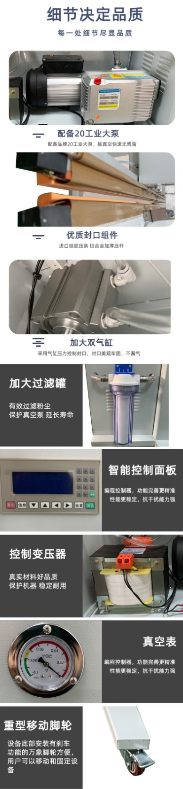 2. 強大的真空抽氣能力,快速達到理想的真空度,提高包裝效率。