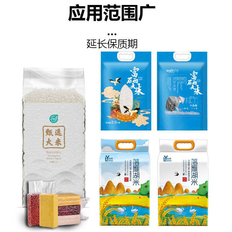 • 降低了包裝袋內(nèi)的濕度。在正常環(huán)境下,空氣濕度可能會(huì)使大米受潮,進(jìn)而引發(fā)霉菌滋生。真空包裝去除了大部分空氣,也就減少了水分進(jìn)入的可能性。同時(shí),霉菌的生長(zhǎng)需要氧氣,真空環(huán)境也能抑制霉菌的繁殖,從而延長(zhǎng)了大米的保質(zhì)期,確保大米在儲(chǔ)存和運(yùn)輸過程中的品質(zhì)。