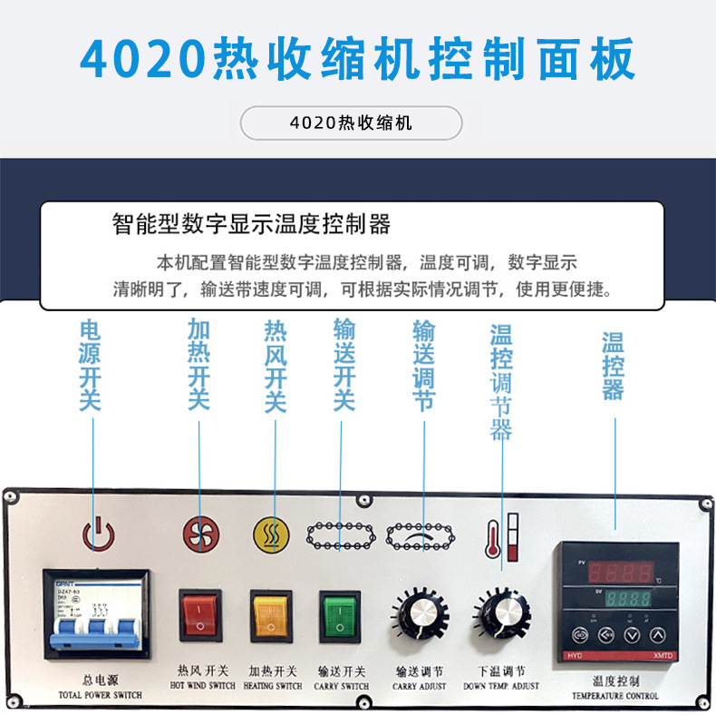 - 加熱裝置:如熱風機、加熱管等,是熱收縮處理的核心部件。它們能夠產生高溫氣流或熱量,使進入熱收縮區(qū)域的包裝膜迅速受熱收縮。加熱裝置的加熱功率、溫度分布等特性對于熱收縮效果有著重要影響,需要根據(jù)不同的膜材質和產品的特性進行優(yōu)化設置。
