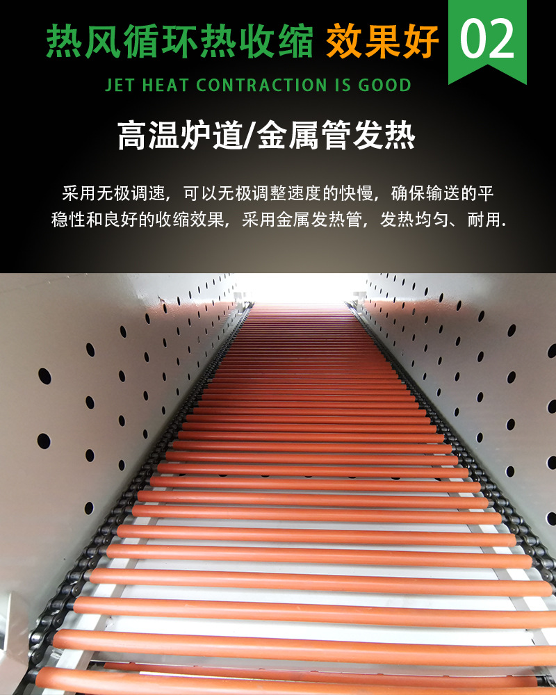 - 輸送帶:負(fù)責(zé)將待包裝物品平穩(wěn)地輸送通過各個工作區(qū)域,如套膜區(qū)、加熱區(qū)等。輸送帶的速度通常是可調(diào)節(jié)的,以便適應(yīng)不同的包裝速度要求。