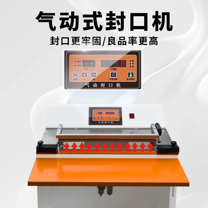 - 氣動封口:利用壓縮空氣驅(qū)動氣缸,帶動封口部件運(yùn)作。電器脈沖技術(shù)使發(fā)熱元件發(fā)熱,在熱量和壓力共同作用下,實(shí)現(xiàn)包裝材料的封口。
