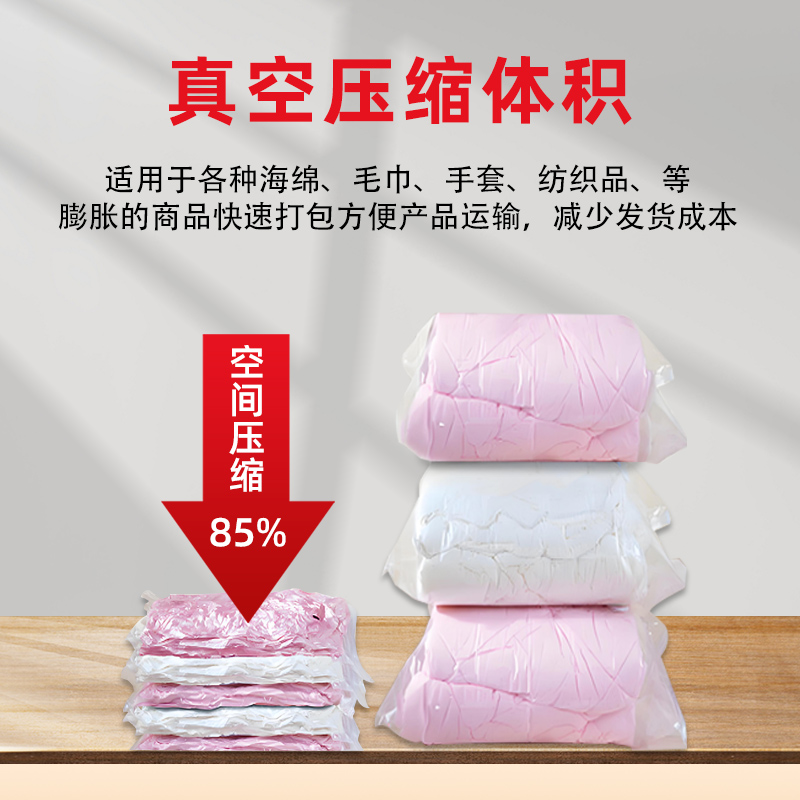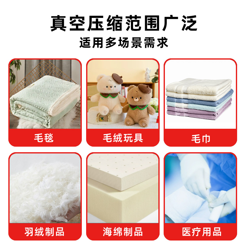 • 家居用品:用于羽絨被、棉被、枕頭、毛絨玩具等蓬松物品的收納包裝,可大大節(jié)省存儲(chǔ)空間,使家居環(huán)境更加整潔有序。
