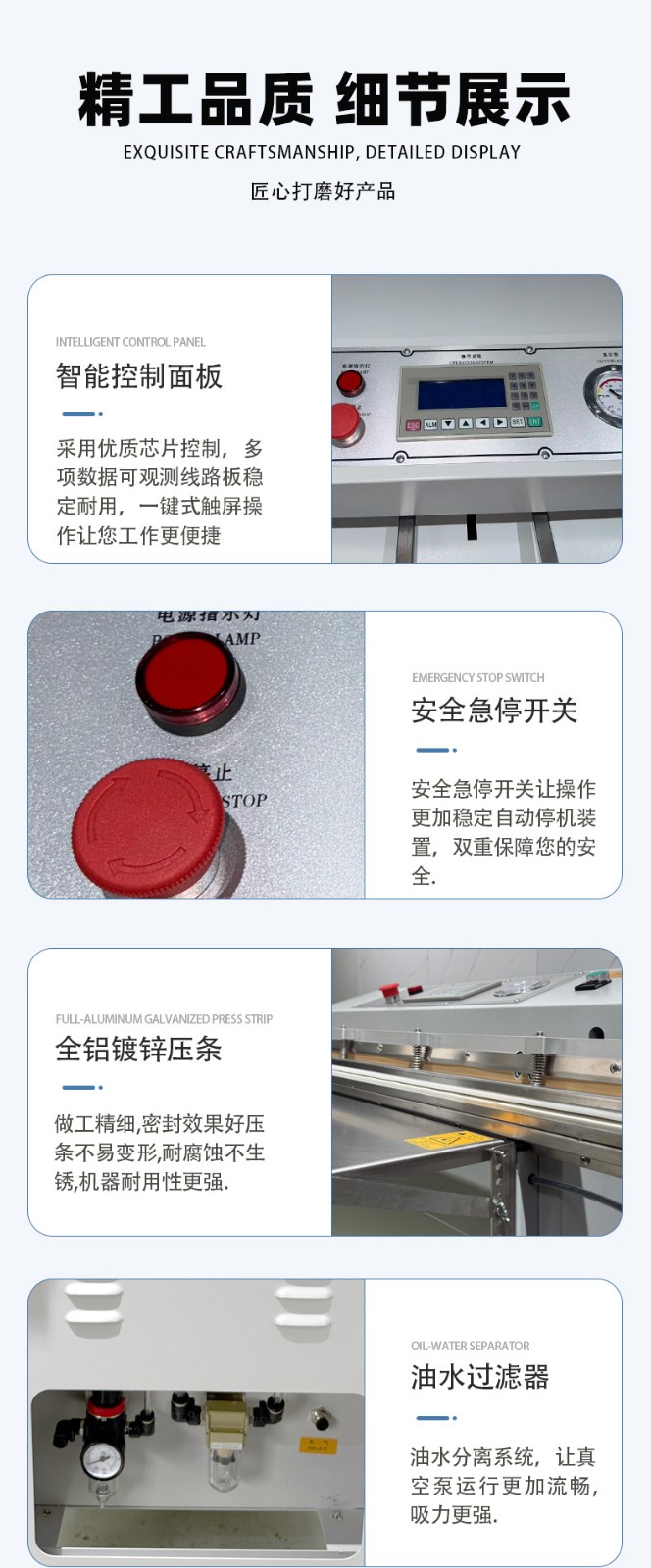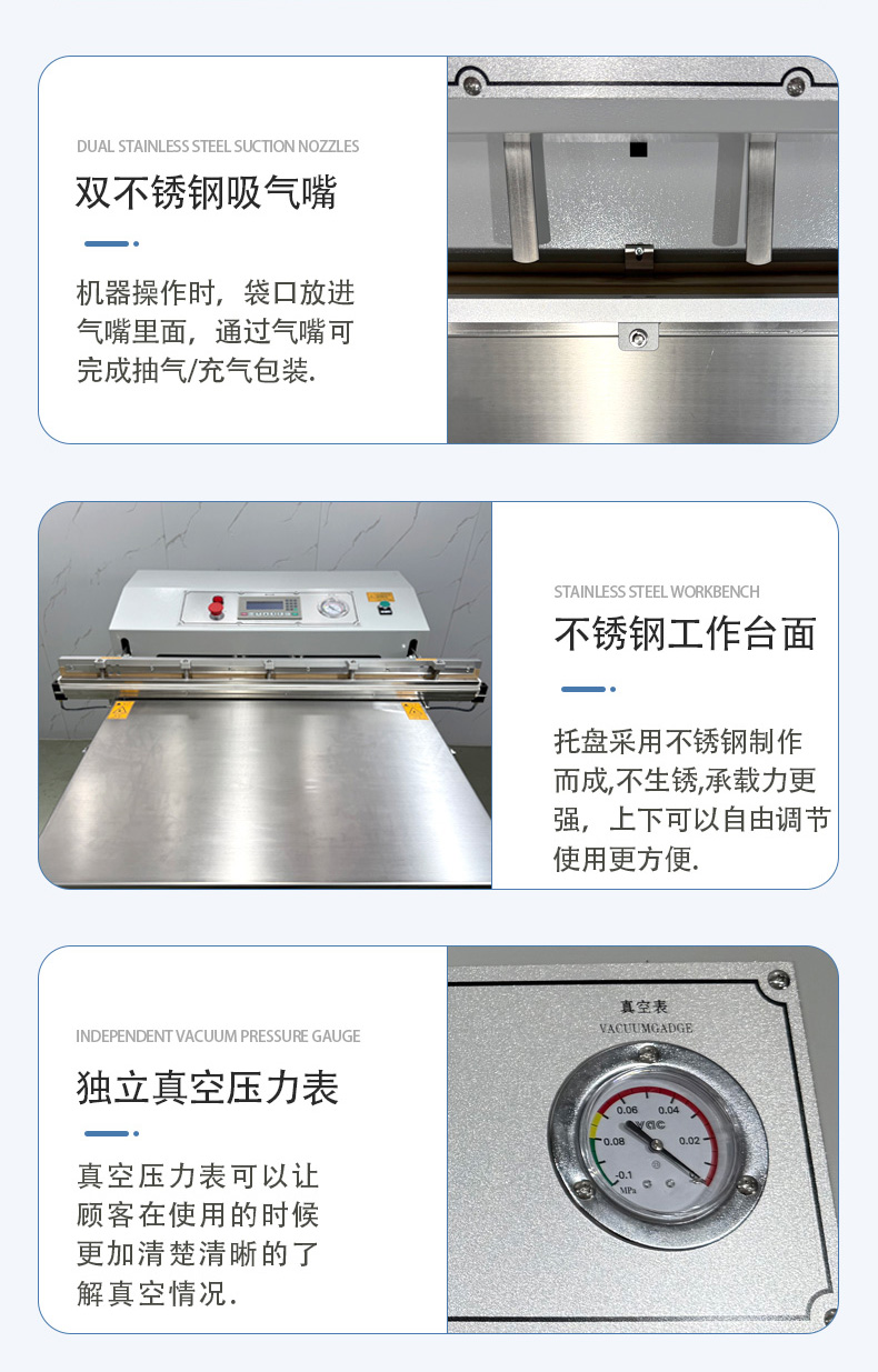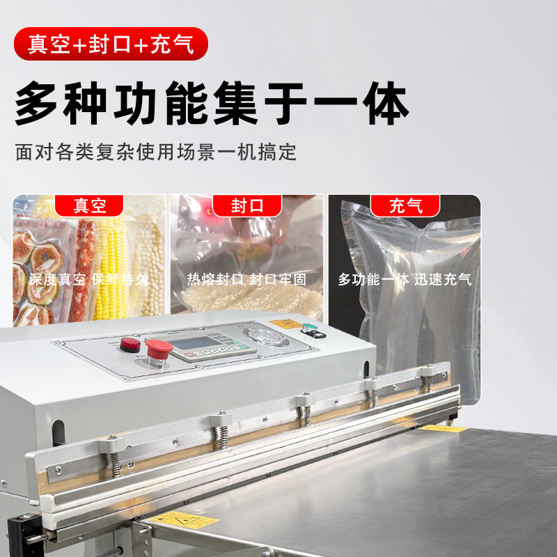 • 適配多場(chǎng)景:支持 PE、PA、鋁箔等多種包裝材料,可切換 “真空封口”“充氣保鮮” 兩種模式,兼顧工業(yè)防銹與食品保鮮需求。