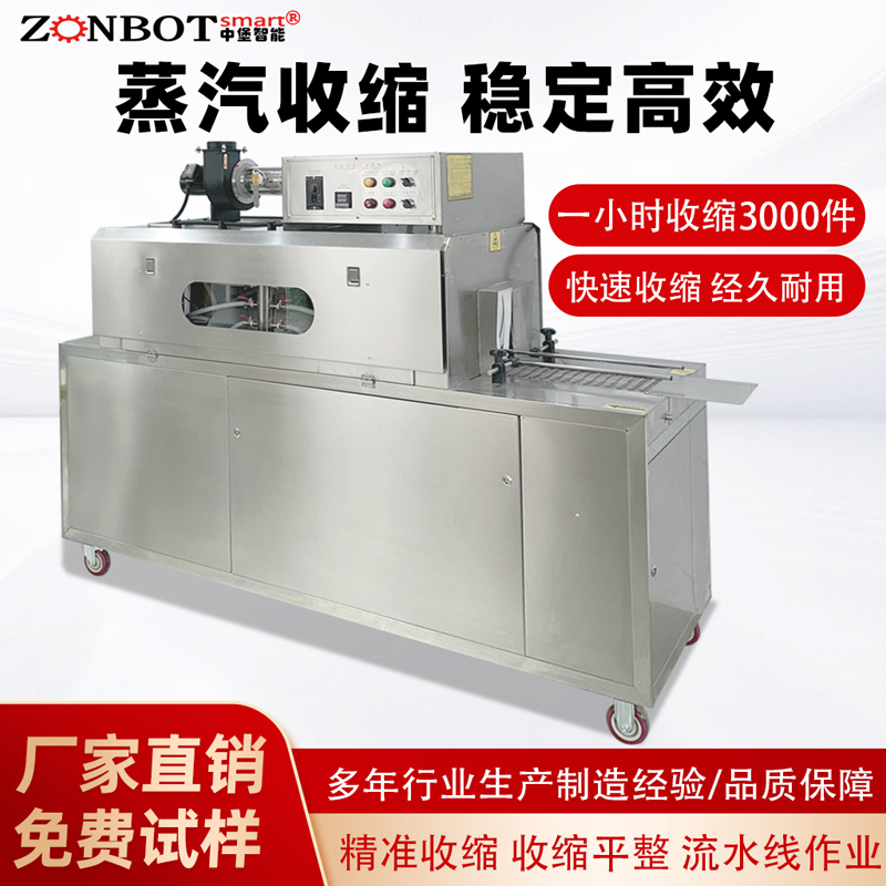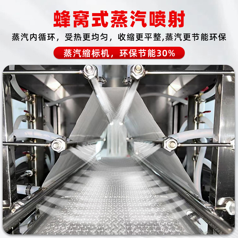 配備 PLC 智能控制系統(tǒng),可精準(zhǔn)調(diào)節(jié)蒸汽溫度(50℃-120℃可調(diào))、輸送速度與蒸汽噴射量,兼容 POF、PVC、PE 等多種熱收縮膜材,滿足不同產(chǎn)品的包裝厚度與質(zhì)感要求。