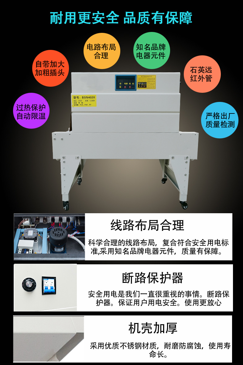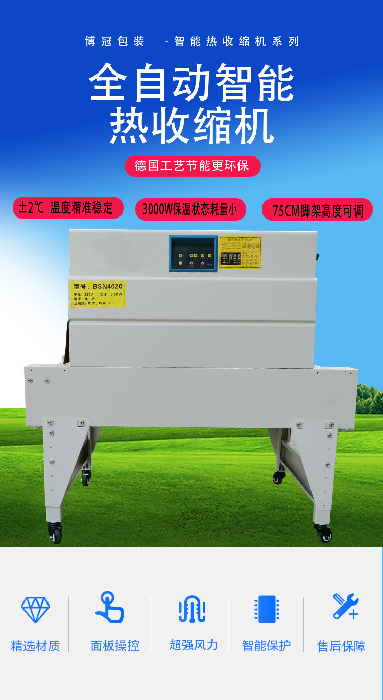 熱收縮機(jī)采用的進(jìn)口材料,保證了產(chǎn)品的質(zhì)量和性能,使您的產(chǎn)品在收縮包裝后,更耐用、更美觀,更具市場競爭力。