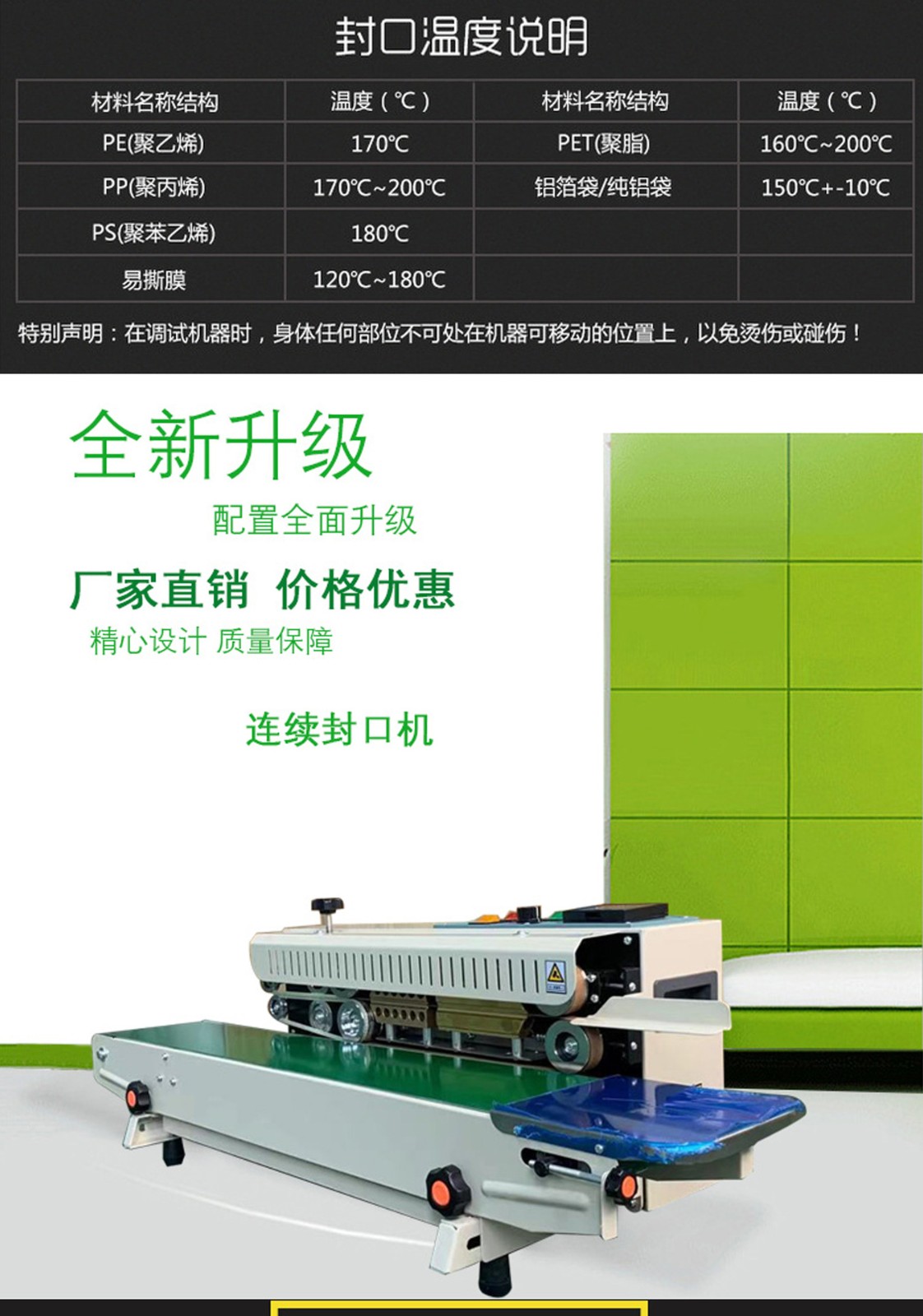 盡管連續(xù)式封口機具有諸多優(yōu)勢,但在實際應(yīng)用中仍需要注意一些問題。例如,在使用連續(xù)式封口機時,需要根據(jù)產(chǎn)品的特性和封口要求選擇合適的封口材料和參數(shù),以確保封口質(zhì)量和產(chǎn)品安全。此外,連續(xù)式封口機的維護和保養(yǎng)也至關(guān)重要,定期檢查和更換易損件、保持設(shè)備的清潔和潤滑等,都是確保設(shè)備正常運行和延長使用壽命的關(guān)鍵。