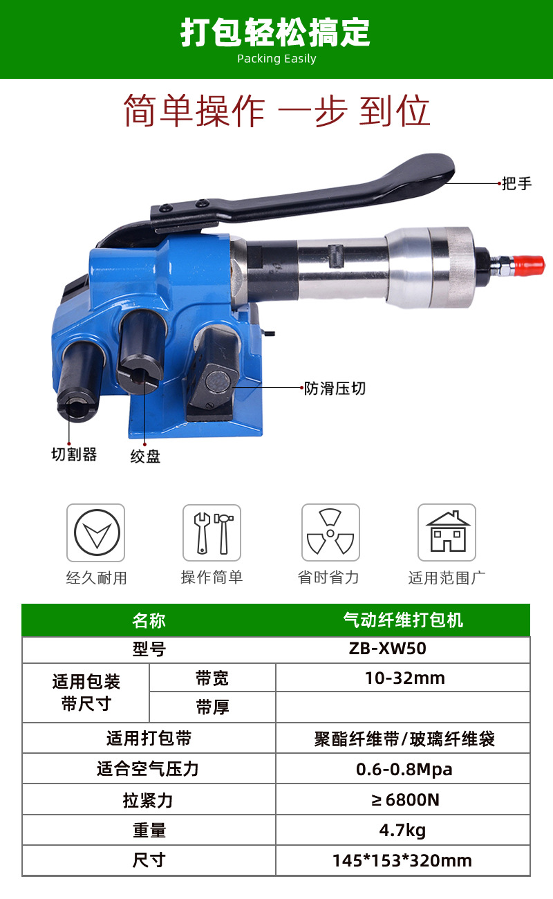 XW50手持式打捆機(jī)聚酯纖維打包帶包裝機(jī)械 設(shè)備氣動(dòng)纖維帶打包機(jī)