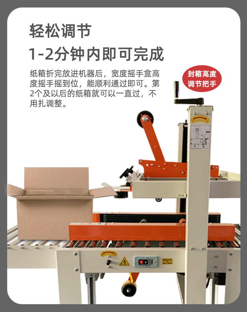 為您介紹一款功能強大、操作簡便的封箱機。首先,這款封箱機采用了先進的自動控制技術,只需通過操作面板上的按鈕,即可實現(xiàn)封箱動作,無需繁瑣的操作步驟。同時,該封箱機還具備多種封口方式,如熱熔封口、膠帶封口等,滿足不同產品的需求。