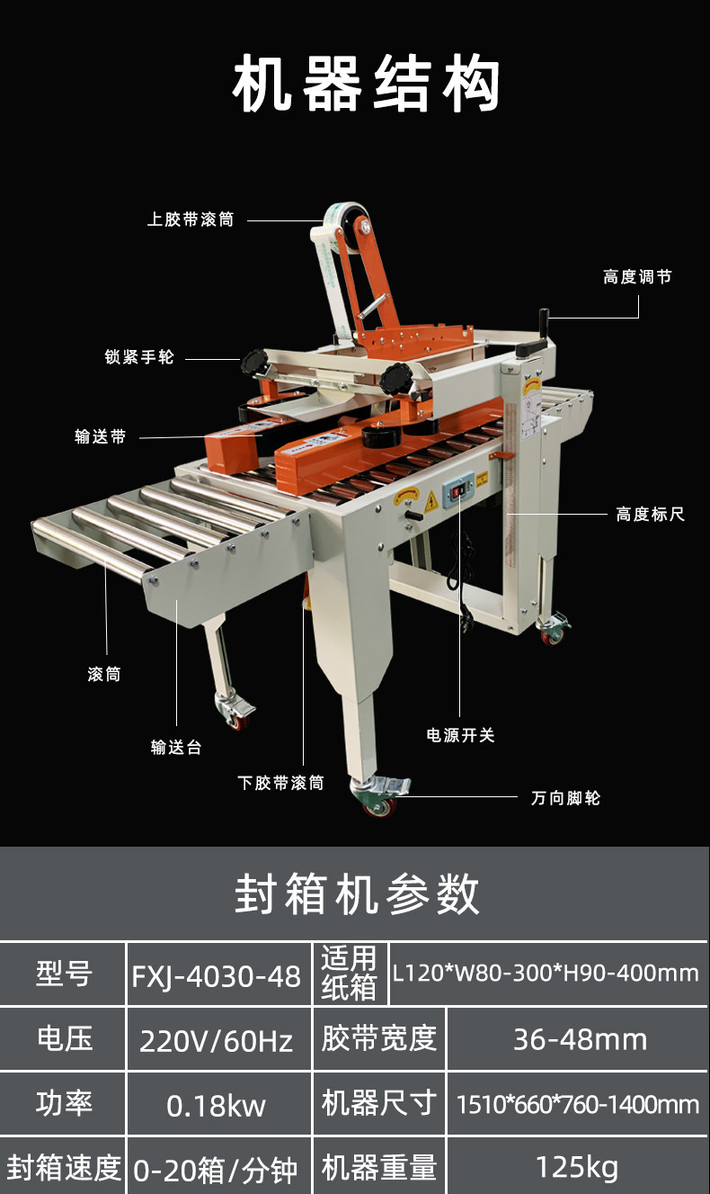 取決于操作人員的熟練程度。因此,我們提供詳細(xì)的使用教程,幫助您快速上手,掌握封箱機(jī)的操作方法。同時(shí),封箱機(jī)還具備故障報(bào)警功能,更好地保障了使用安全。