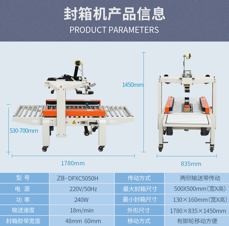 封箱機,也稱為Case sealer machine,主要用于紙箱的封箱包裝。它們不僅適用于單機作業(yè),也可以與流水線配套使用,是包裝流水線作業(yè)中不可或缺的設備。封箱機的功能包括自動折疊、粘合和封口紙箱,通過先進的感應和控制技術,能夠自動檢測和調整紙箱尺寸,按照設計要求進行折疊和封口操作,大大提高了包裝的效率和一致性,減少了人工操作的錯誤和勞動強度。
