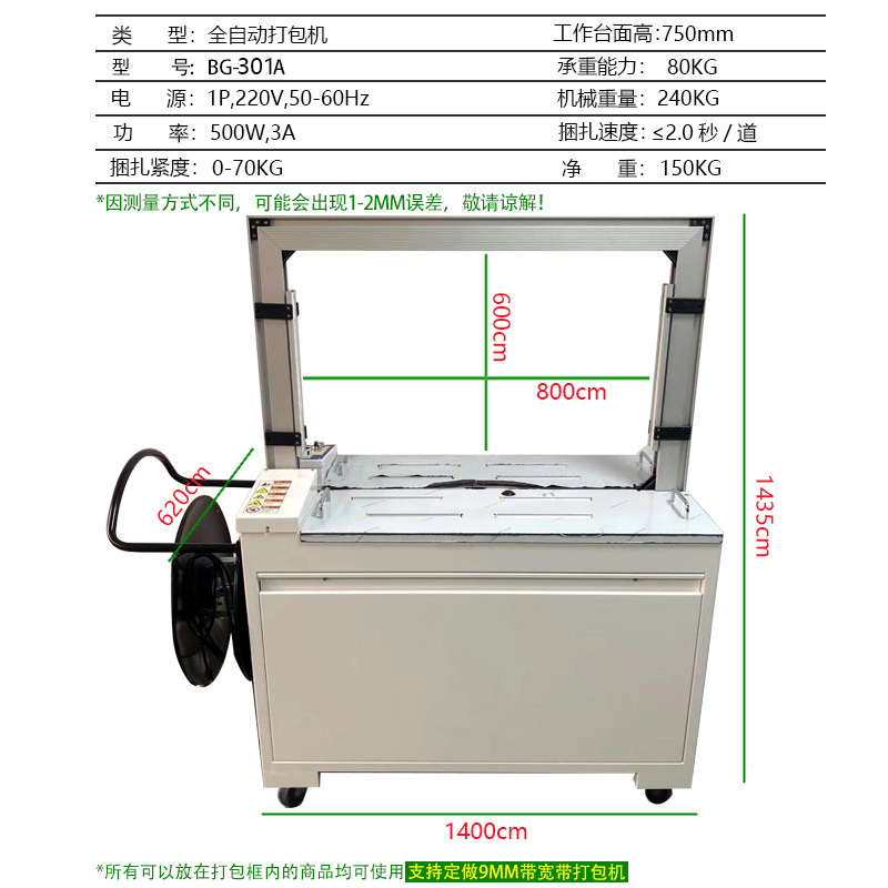不同類型的全自動(dòng)打包機(jī)適用于不同的場(chǎng)景和物品。比如,有的適用于紙箱打包,有的適用于塑料制品打包等。